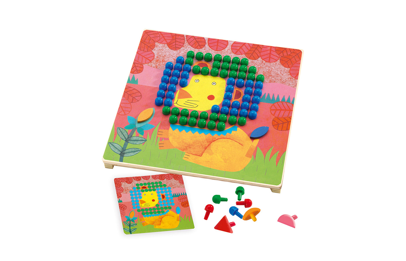 Les enfants peuvent trier les couleurs sur le tableau, reproduire les cartes modèles ou simplement faire leurs propres dessins avec ces perles colorées.