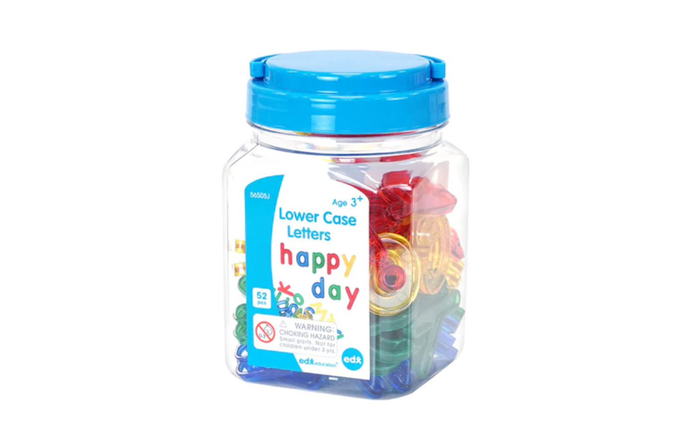 Lettres en plastique transparent dans 4 couleurs vives et colorées. Idéal pour développer la reconnaissance des lettres. Également très adapté pour la table lumineuse.